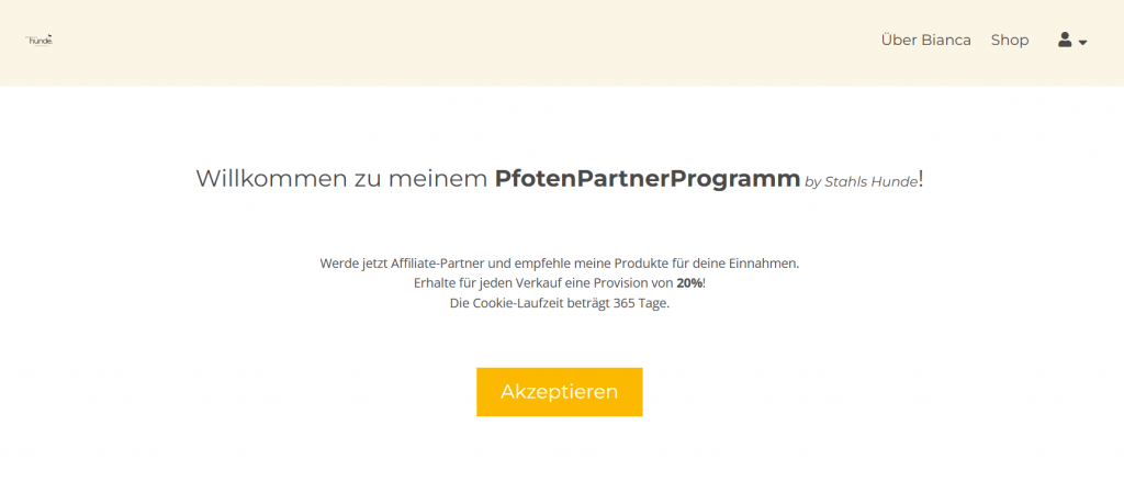 1. Folge meinem Einladungslink und klicke HIER. Du landest jetzt voll automatisch auf meiner Stahls Hunde PfotenPartnerProgramm-Seite.